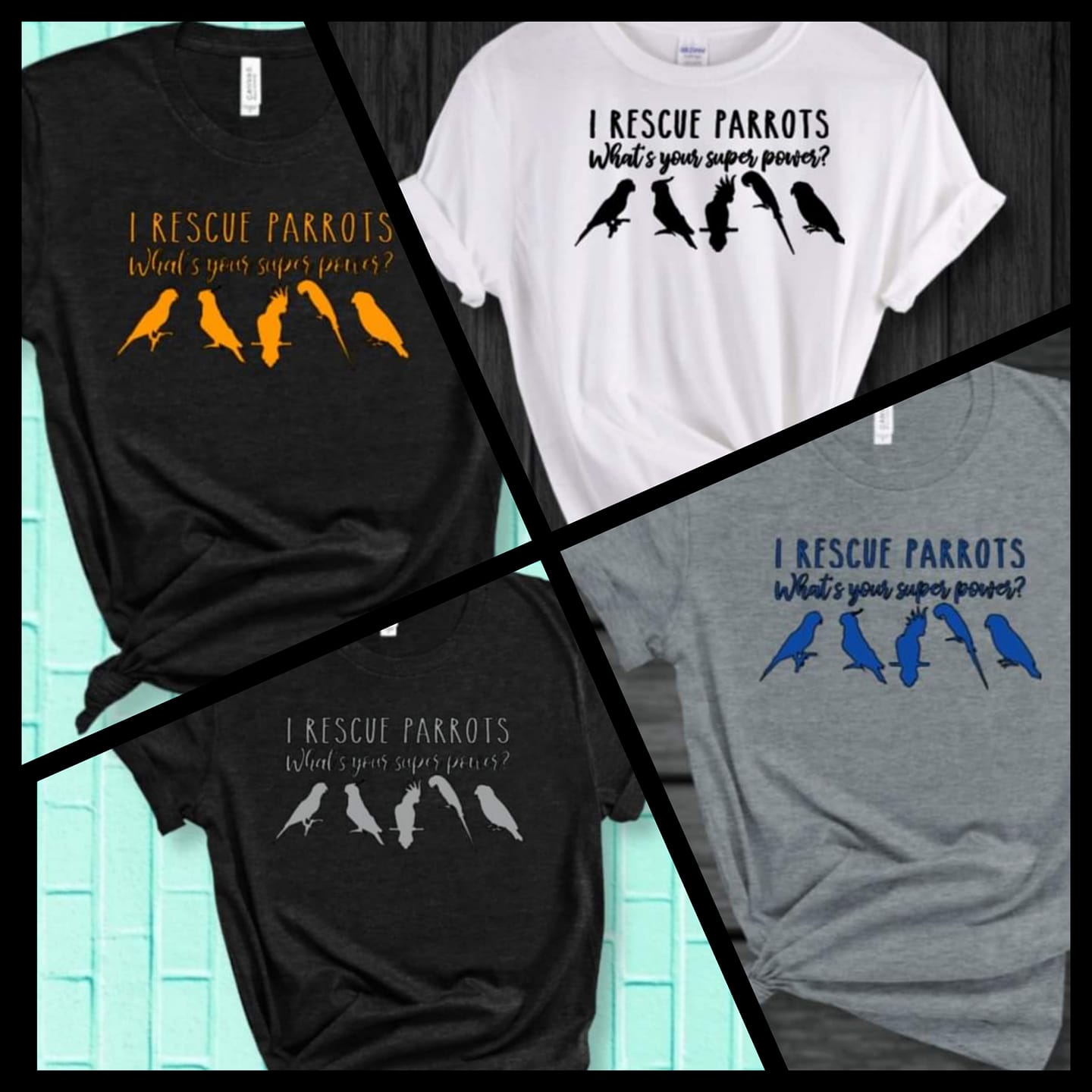***This shirt will have Furever Feathers Parrot Rescue on the sleeve for the tee and across the back for the hoodies