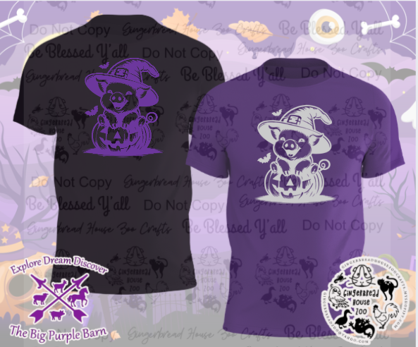 Add a dash of farmyard charm to your spooky season with this playful Halloween shirt featuring a pig dressed as a witch, perched inside a glowing jack-o'-lantern! With bats, ghosts, and pumpkins swirling around, this design blends autumn whimsy with festive flairâperfect for animal lovers, rescue supporters, and Halloween enthusiasts alike.